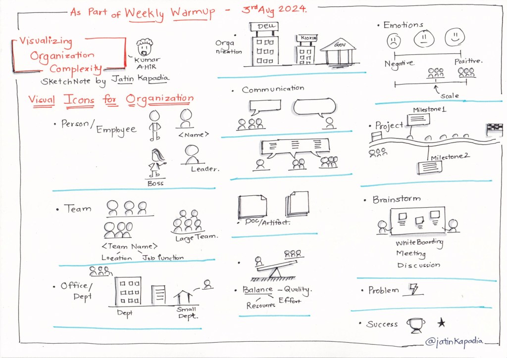 Visualizing team structures, workflows, and scaling challenges can often feel overwhelming. But with the right approach,even the most complex organizational structures can be broken down into manageable components. Inspired by a recent Sketchnoting community session led by Kumar Ahir (@letsketchin), I’ve discovered a powerful set of visual icons to simplify organizational complexity.