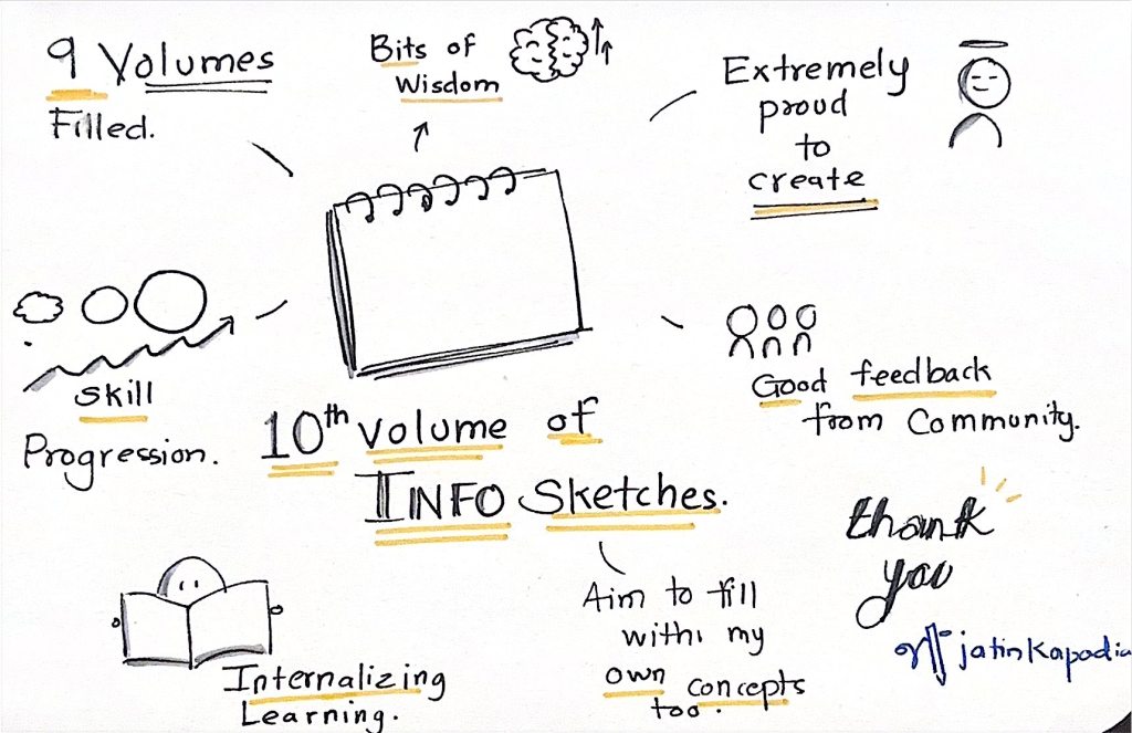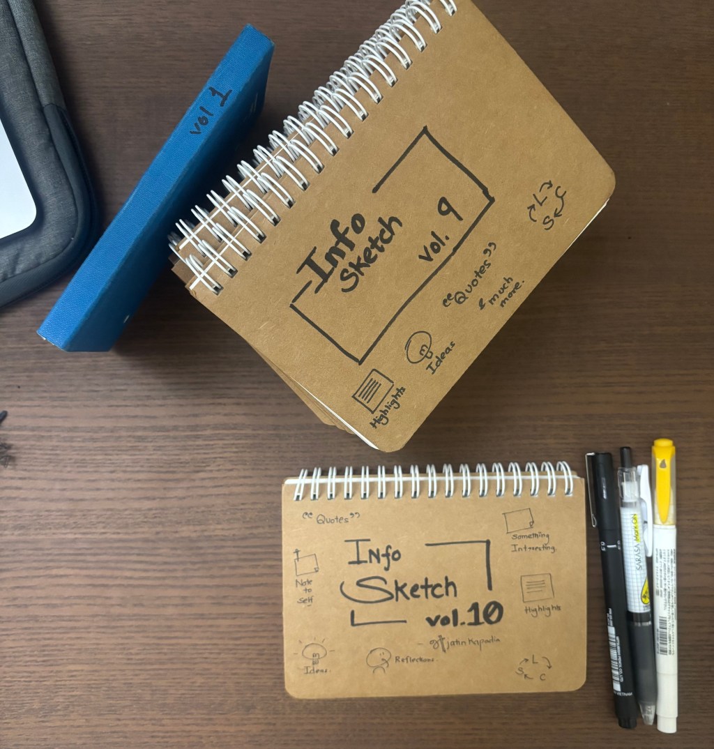 Today, I finished my ninth book for InfoSketches. These are my commonplace books, where I jot down notes and pair them with a visual. I use them to capture interesting quotes, new concepts, highlights from past reads, or even just random reflections.